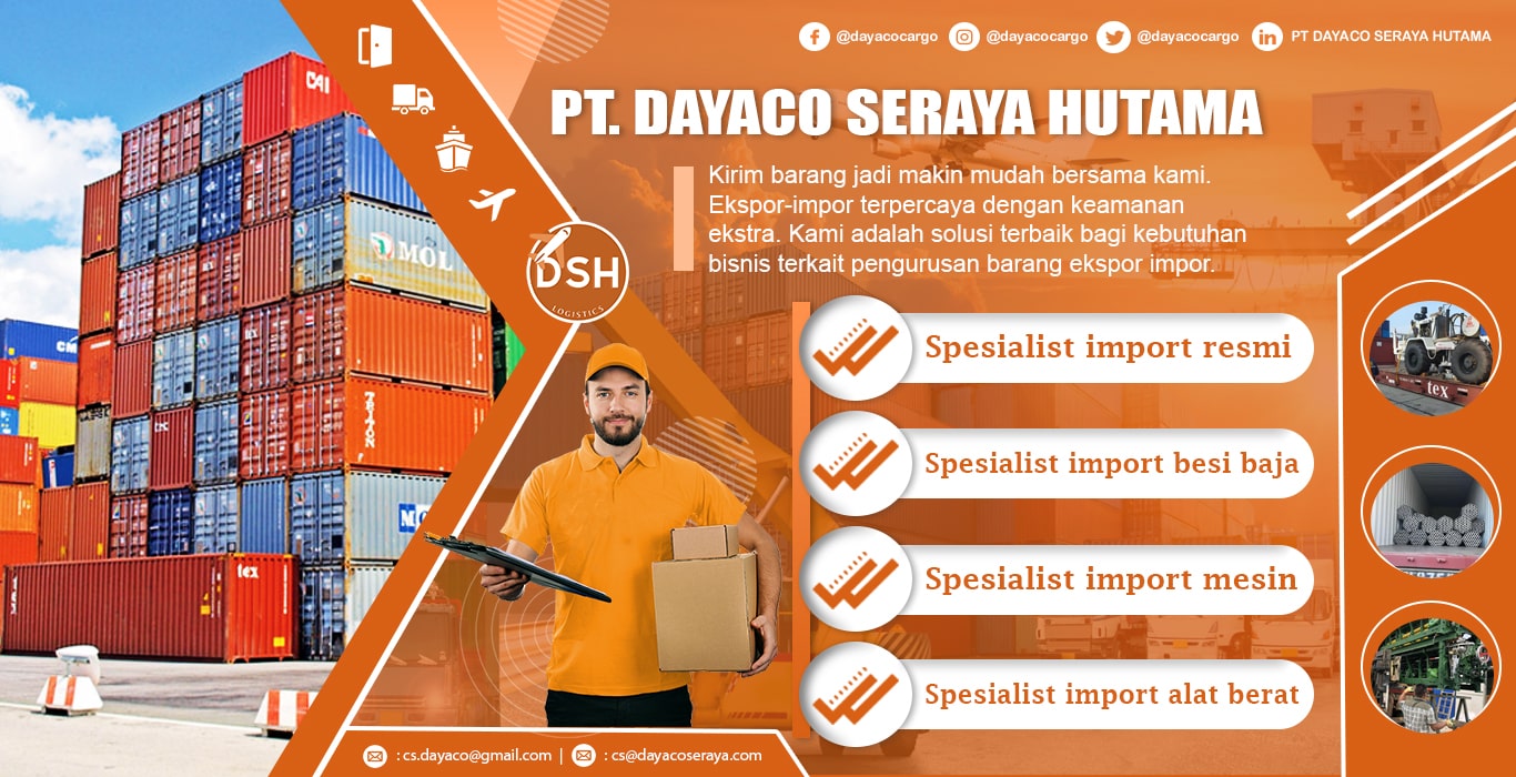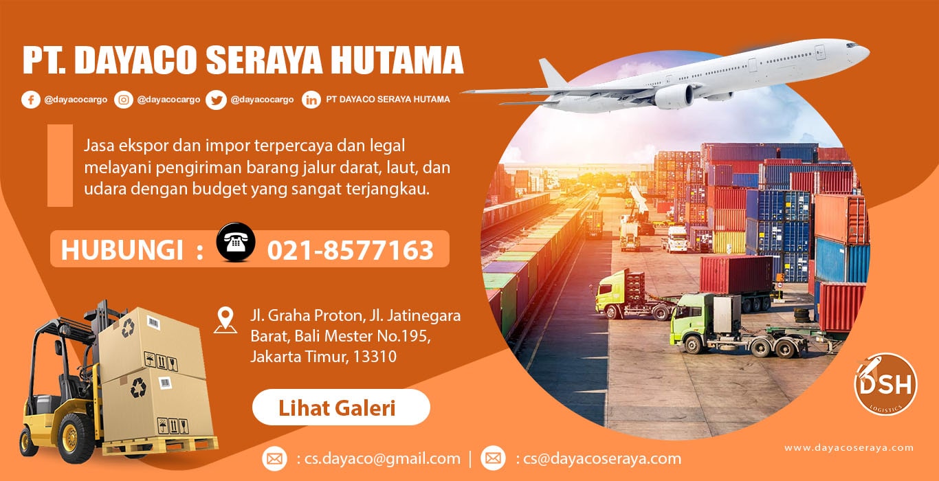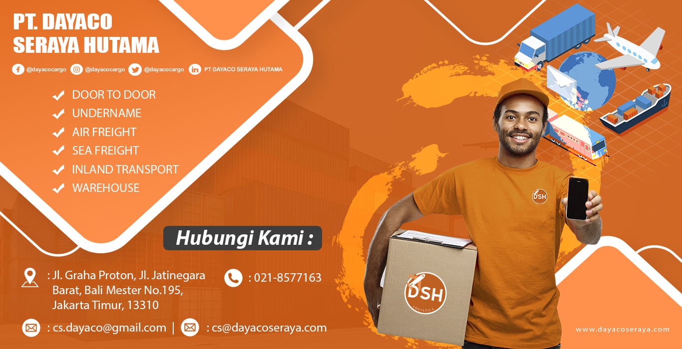 DAYACO SERAYA HUTAMA adalah perusahaan jasa pengiriman barang yang mengelola pengiriman cargo melalui Laut, Udara, dan Darat. Perusahaan kami bergerak dibidang ekspor dan impor. Berlokasi di Jakarta, sebagai ibukota negara Indonesia dengan jangkauan yang dekat ke arah bandara internasional Soekarno-Hatta dan pelabuhan Tanjung Priok Jakarta.